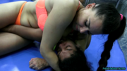 Two European beauties, Natalie and Dina Light, do battle. At the start Natalie makes the bold proclamation that she's going to make Dina her Wrestling Bitch! Dina is undeterred by her boast, but when they go at it Natalie does indeed dominate from the start. She controls Dina with holds such as a pin down with a grapevine, schoolgirl pin, reverse head scissor and breast smother. You can hear the cries and moans Dina makes and it's obvious she's in way over her head, but Natalie doesn't care as she enjoys making Dina suffer! The onslaught continues as Natalie punishes her in another head scissors and more schoolgirl pins. Natalie talks trash to Dina telling her how she's totally embarrassing her but there's nothing Dina can do about it. Finally, as it's obvious that Natalie is the superior wrestler, she totally humiliates Dina by holding her down and spanking her! At the very end Dina is cryiing she's in so much pain. Natalie finishes her humiliation by sitting on Dina's back, bending one of her arms back and flexing her biceps. Natalie has indeed made Dina her "Wrestling Bitch".